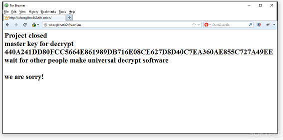 "El Proyecto ha sido cerrado. una llave maestra con descifrado universal para desencriptar [KEY] pronto se les enviara a las personas que han sufrido con el inconveniente. Lo sentimos! "